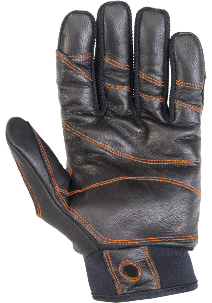 Verwendbar zum Sichern, Abseilen mit dem Zwillingsseil und Seilmanöver im Allgemeinen. Die Handfläche und der Bereich zwischen Daumen und Zeigefinger wurden mit einer doppelten Naturlederschicht überzogen. Der Handrücken wurde mit Leder verstärkt und besteht aus atmungsaktiven und elastischen Einlagen. Das ergonomische Handgelenk mit Klettverschluss besitzt ein bequemes System zum Ausziehen.