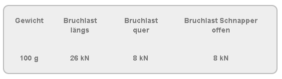Großer HMS Sicherungskarabiner mit 3-Wege-Verschluss. HMS Karabiner mit großer Arbeitsfläche und Schnapperöffnung, um mehrere Elemente gleichzeitig unterzubringen. Die große Oberfläche und die HMS Form erleichtern die Verwendung mit Mastwurf und Halbmastwurf.