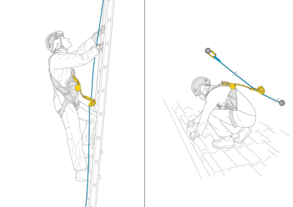 - Auffangen von Stürzen und Stoppen von unkontrollierten Abseilfahrten mit einer Geschwindigkeit von mehr als zwei Metern pro Sekunde.