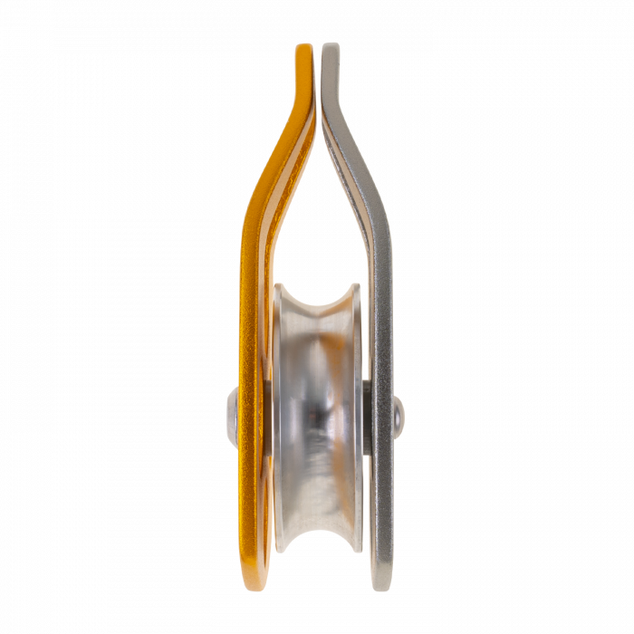 Hocheffiziente Einzelrolle mit schwenkbarer Seitenplatte und kugelgelagerter Rolle. Die Schwenkbarkeit ermöglicht die freie Positionierung der Rolle am Seil, während die Kugellager maximale Effizienz und Langlebigkeit gewährleisten.
